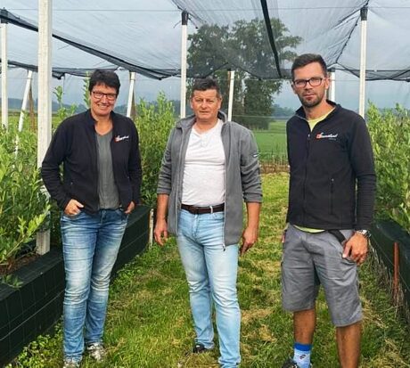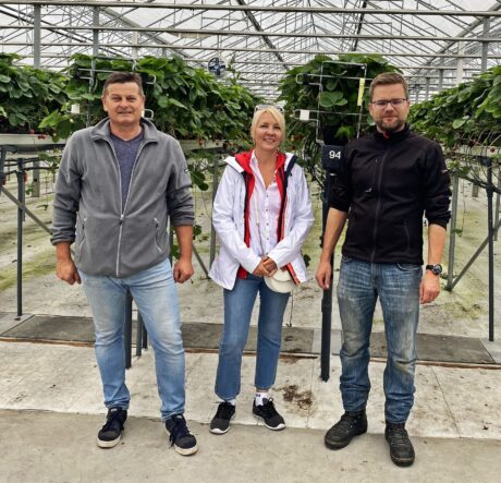 Od lewej: Barbara Schwab Züger- właścicielka plantacji, Zbigniew Jarosz- Doradca Jagodowy, Remigiusz Pacyna- menadżer plantacji.